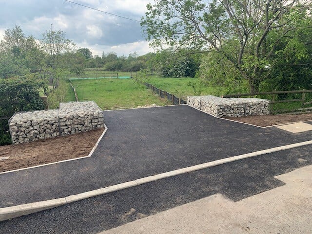 Our team installed gabion baskets to ensure compliance with the planning conditions, and a large culvert pipe was installed to assist with surface water running beneath the new site entrance.